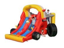 Un vero centro giochi completo ed entusiasmante. Grande superficie per saltare, arrampicata, scivolo di grandi dimensioni, tunnel, canestro, vasca per palline, tiro a segno e lancio agli anelli.